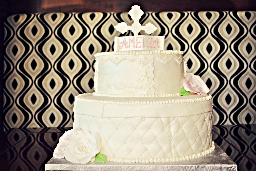 If anyone living in Montreal needs a cake, cupcakes or cookies for a special occasion or just because you're craving sweets, please e-mail me for the baker's info. She did such a great job on Amelia's baptism cake that I felt bad cutting into it. However once cut, I had 2 pieces :) Red velvet with vanilla filling and marshmallow fondant. Yummy!