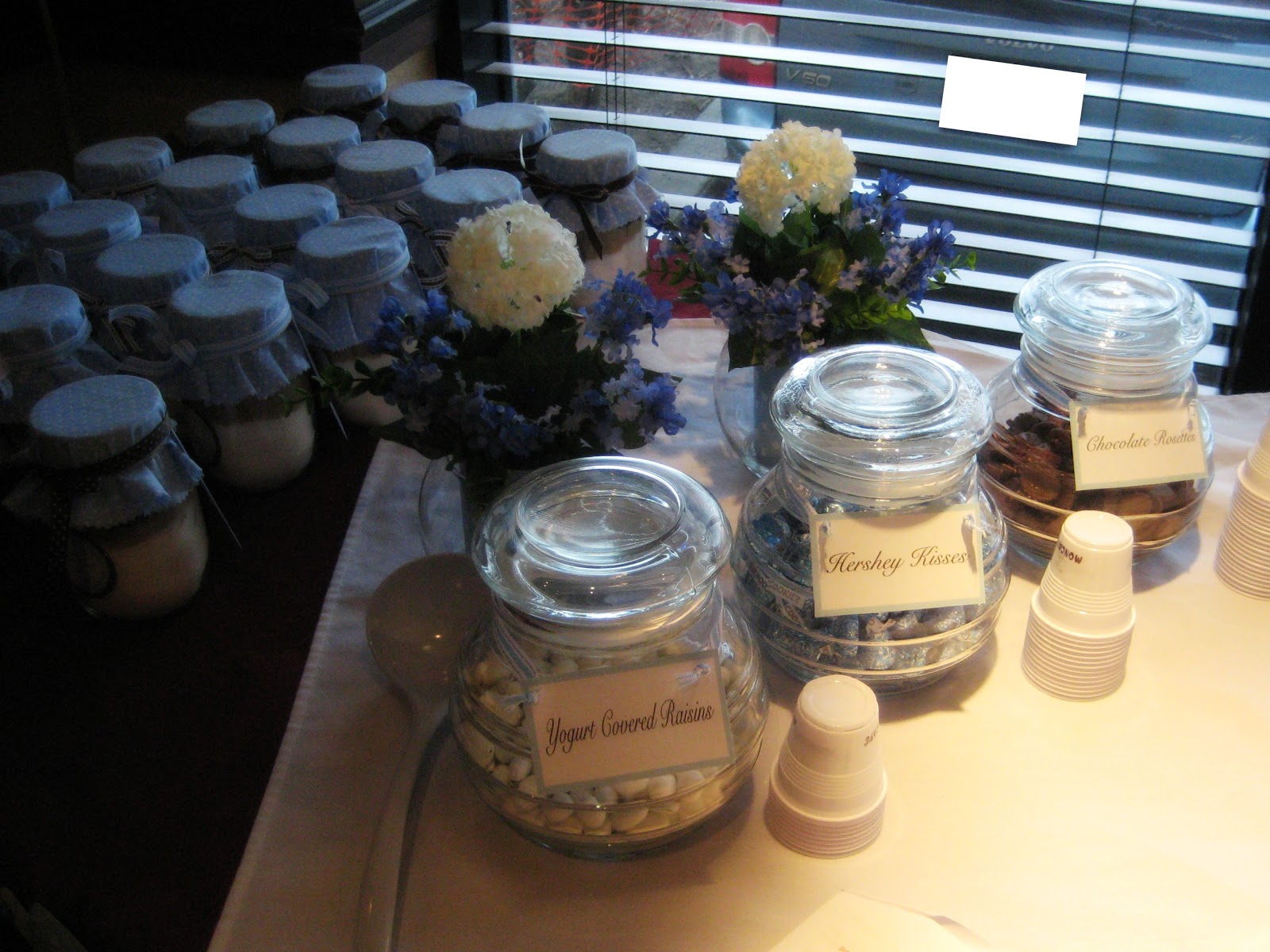 Sticking to our blue/white/brown theme, we purchased candy and chocolate at Bulk Barn for our sweet table.